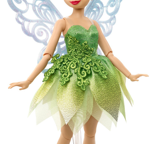 Con un set de alas muy detalladas que parecen estar cubiertas de polvo de hadas, Tinker Bell está lista para vivir aventuras en la tierra de Nunca Jamás y más allá.