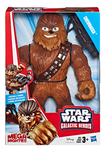 ¡Lánzate a la acción y aventura con las figuras de acción Star Wars Galactic Heroes Mega Mighties! Con el tamaño ideal para los pequeños Jedi, estos juguetes de 25 cm permiten que los niños y niñas controlen la diversión. La figura Mega Mighties de Chewbacca cuenta con 4 puntos de articulación (cabeza, brazos, muñecas y cintura), para que los niños de 3 años en adelante la coloquen en distintas poses.